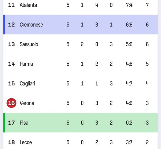 อย่างไรก็ตาม เป็นที่ชัดเจนว่าในหกนัดก่อนช่วงพักเบรกทีมชาติเดือนตุลาคม พิซาล้มเหลวถึงสี่ครั้ง เมื่อกลับมาหลังจากสองสัปดาห์นั้น โดยได้ปรับตัวเข้ากับจังหวะของเซเรียอาอีกครั้ง พิซาสามารถเสมอได้สี่นัดติดต่อกัน เมื่อพิจารณาถึงคู่แข่งอย่างเอซี มิลาน ลาซิโอ และโตริโน คะแนนและฟอร์มนี้ชี้ชัดถึงแนวโน้มที่ดีขึ้น