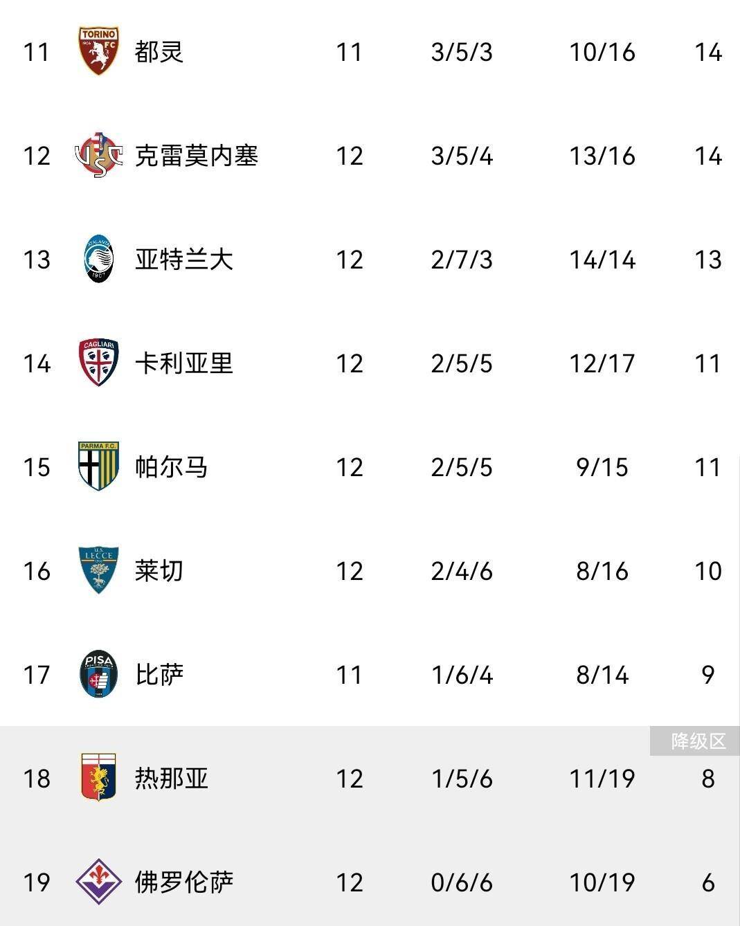 ระดับที่สอง (ยูเวนตุส, โบโลญญา, เป็นต้น): ยูเวนตุสปัจจุบันอยู่อันดับที่ห้า มี 20 คะแนน ตามหลังจ่าฝูงอยู่ 7 คะแนน แต่มีเกมในมือมากกว่าหลายทีม