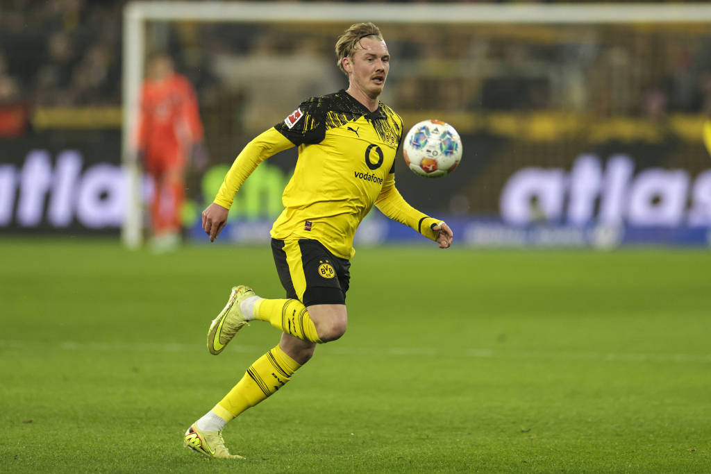 ในนาทีที่ 10 กรอสส์จ่ายบอลกลับมาให้กินเตอร์เปิดบอลไปที่เสาไกล และบรันด์ทวอลเลย์จากมุมแคบเข้าไปอย่างสวยงาม ทำลายสกอร์ให้โบรุสเซีย ดอร์ทมุนด์ขึ้นนำ 1-0 ที่น่าสังเกตคือ นี่เป็นประตูที่ 4 ของบรันด์ทใน 3 นัดหลังสุด แสดงให้เห็นถึงฟอร์มอันยอดเยี่ยมของเขาในขณะนี้