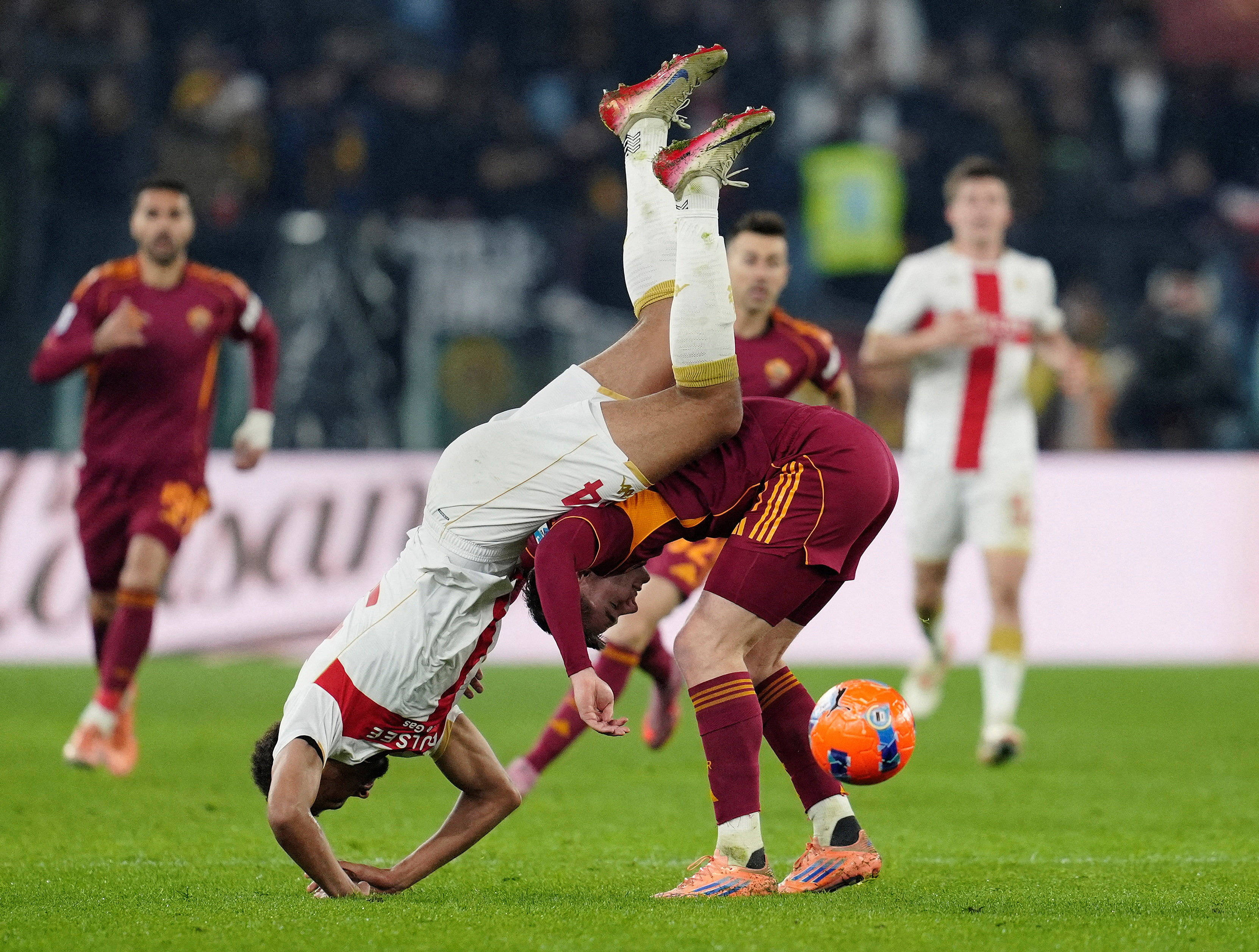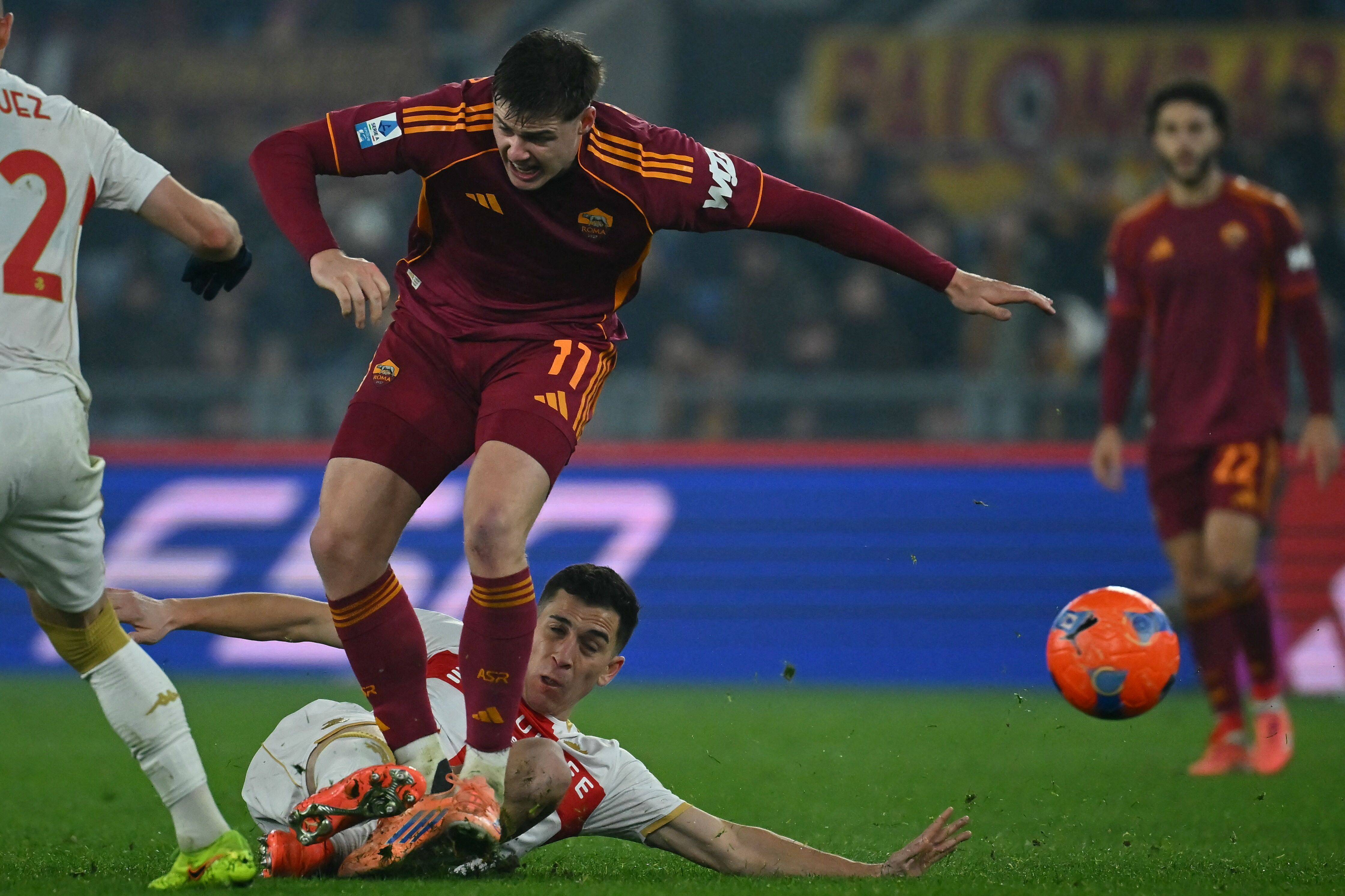 เมื่อวันที่ 29 ธันวาคม, เฟอร์กูสันของโรมา (ขวา) และอ็อตโตอาของเจนัวต่อสู้เพื่อแย่งบอลในระหว่างการแข่งขัน. ซีเอ็นเอ็น/อีพีเอ