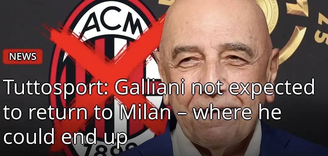 สื่ออิตาลี: การกลับมาของกัลเลียนีที่มิลานดูเหมือนจะเป็นไปได้ยากมาก; เขามีกำหนดจะเข้าร่วมกับฟีฟ่าในตำแหน่งอาวุโสร่วมกับอินฟานติโน