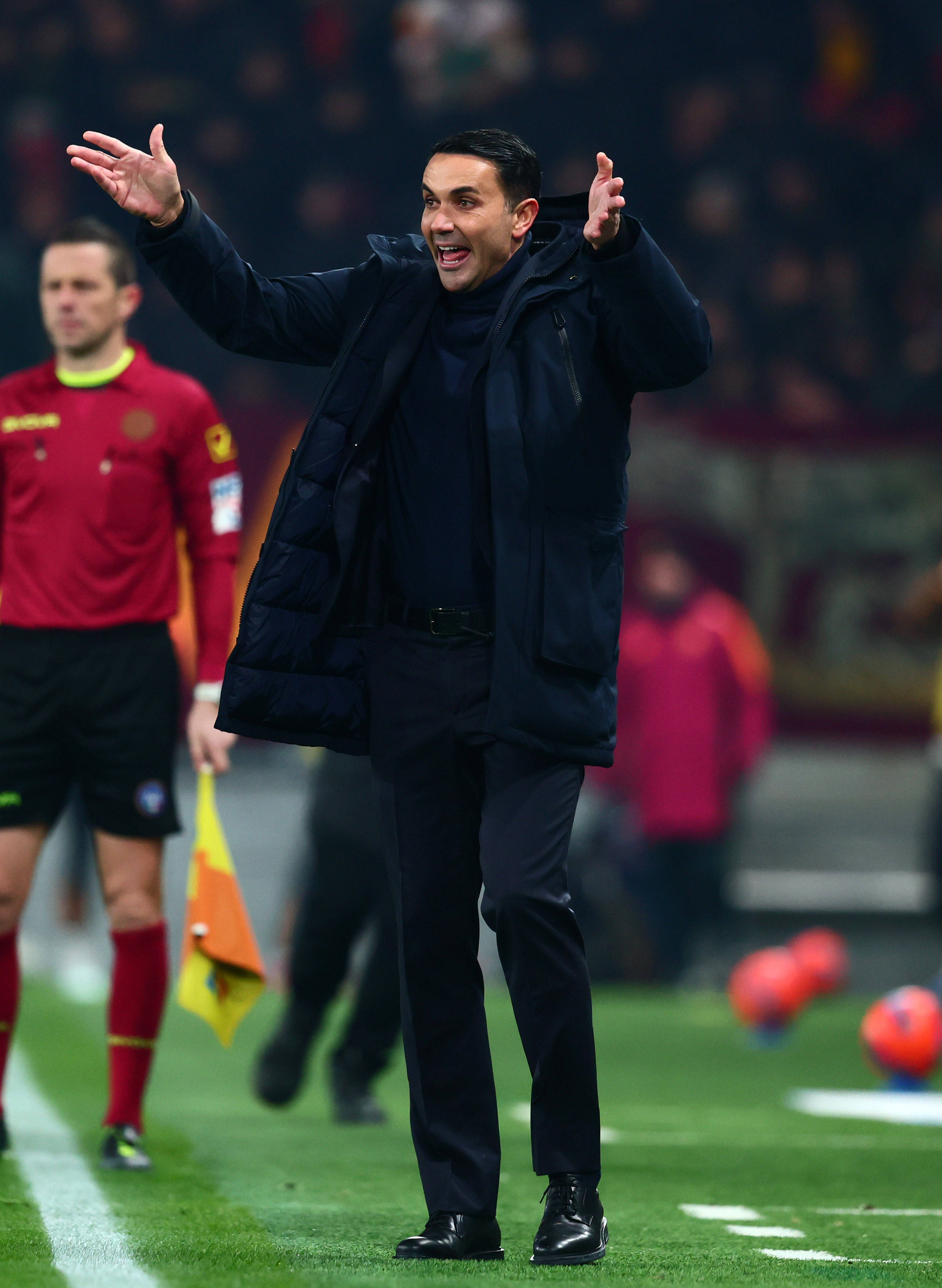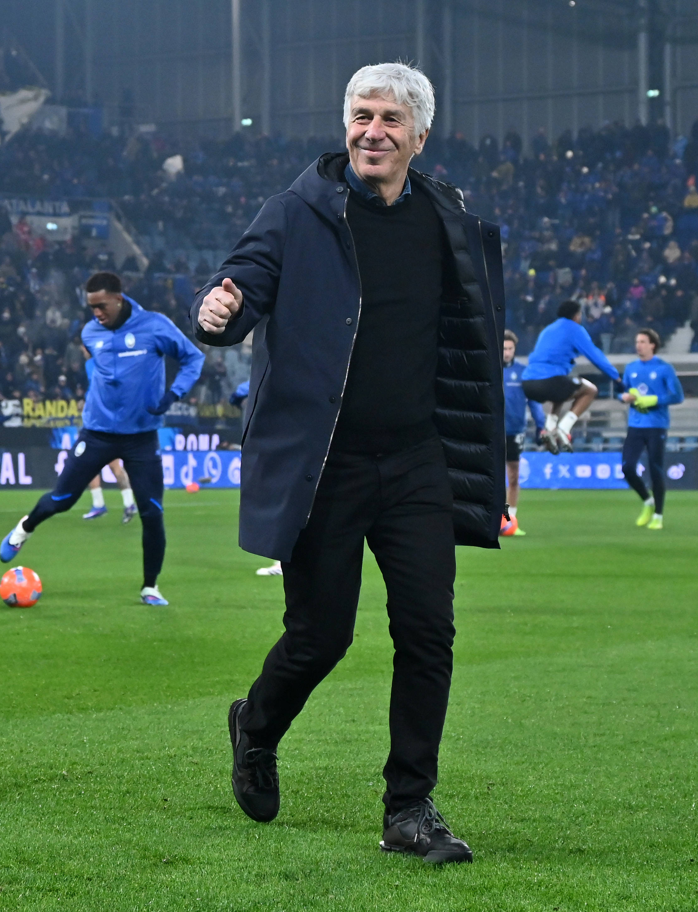 เมื่อวันที่ 3 มกราคม หัวหน้าผู้ฝึกสอนของอตาลันต้า ปาร์ลาดินโญ (ด้านหน้า) กำลังสั่งการทีมของเขาจากข้างสนาม สำนักข่าวซินหัว (ภาพโดย อัลแบร์โต ลิงเกีย)