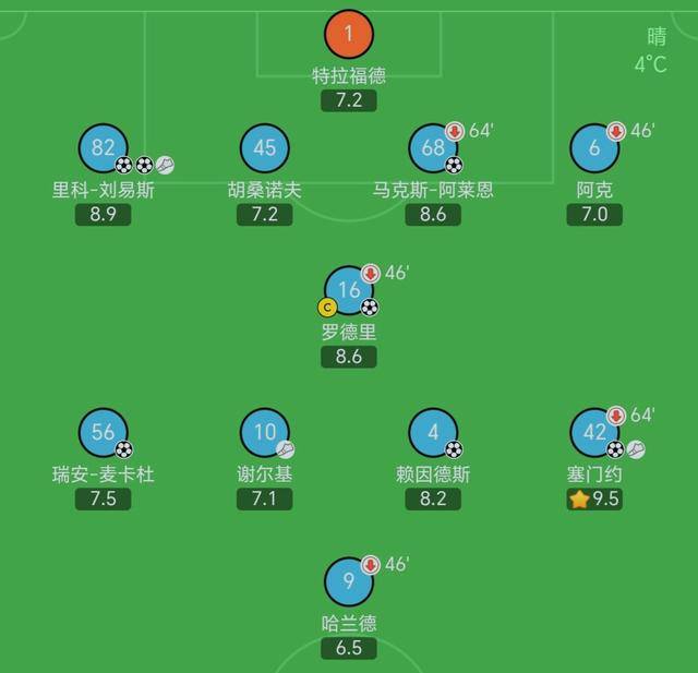 เมื่อถึงครึ่งเวลา แมนเชสเตอร์ ซิตี้ นำอยู่สี่ประตูอย่างเหนือชั้น อาจคาดหวังว่าพวกเขาจะผ่อนเกมลง แต่เป๊ป กวาร์ดิโอลา กลับโบกมือส่งดูคู, แบร์นาร์โด ซิลวา และโอ'ไรลีย์ ลงสนาม ทีมได้ปลดปล่อยพลังโจมตีอย่างเต็มที่ – ไม่หยุดยั้งเลย!
