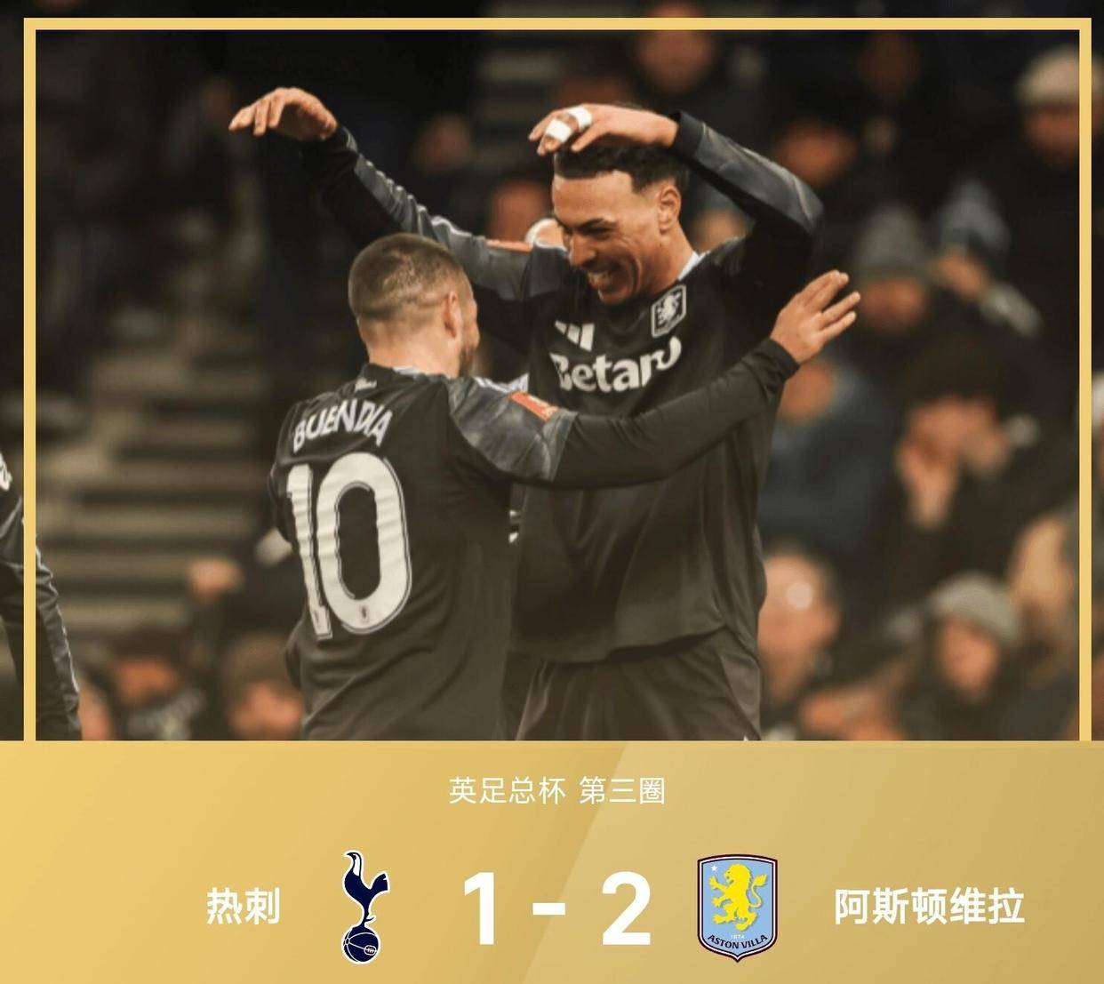 ก่อนอื่น ขอพูดถึงการแข่งขันระหว่างวิลล่ากับสเปอร์สกันก่อนนะครับ ผมติดตามพรีเมียร์ลีกค่อนข้างใกล้ชิด และวิลล่าก็ทำผลงานได้อย่างยอดเยี่ยมในฤดูกาลนี้ แสดงให้เห็นถึงแรงขับเคลื่อนที่แท้จริงในลีก สำหรับการแข่งขันเอฟเอคัพนัดนี้ พวกเขาต้องออกไปเยือนสเปอร์ส และพูดตามตรง ผมค่อนข้างกังวลอยู่บ้างก่อนเกม เพราะการไปเล่นที่สนามของสเปอร์สไม่ใช่เรื่องง่ายเลย แต่เมื่อได้ดูการแข่งขัน วิลล่าก็ออกมาสู้ตั้งแต่เริ่ม ไม่มีท่าทีว่าจะยอมแพ้เลย ผู้เล่นคนนั้น, บูเอนเดีย, มีส่วนร่วมในทั้งสองประตูในครึ่งแรก ผมคิดว่ามันเป็นนาทีที่ 22 เมื่อเขาซัดเข้าประตูจากมุมแคบ เป็นการจบสกอร์ที่ยอดเยี่ยม และการสร้างเกมรุกก็ยอดเยี่ยมเช่นกัน