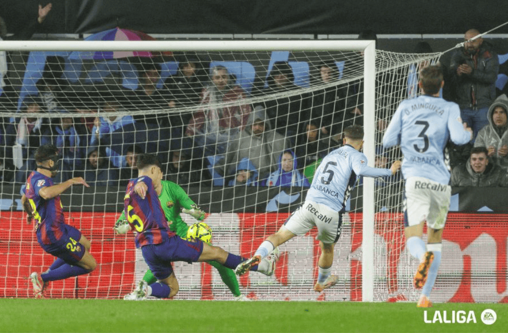 ในนาทีที่ 11 กับดักล้ำหน้าของบาร์เซโลนาพิสูจน์ให้เห็นอีกครั้งว่าไร้ประสิทธิภาพเมื่อบัลเดออยู่ข้างหลัง เซลต้า บีโก้เปิดเกมโต้กลับอย่างรวดเร็ว โดยเซร์คิโอ การ์เร่ทะลุผ่านเข้าไปยิงประตูตีเสมอได้ทันที