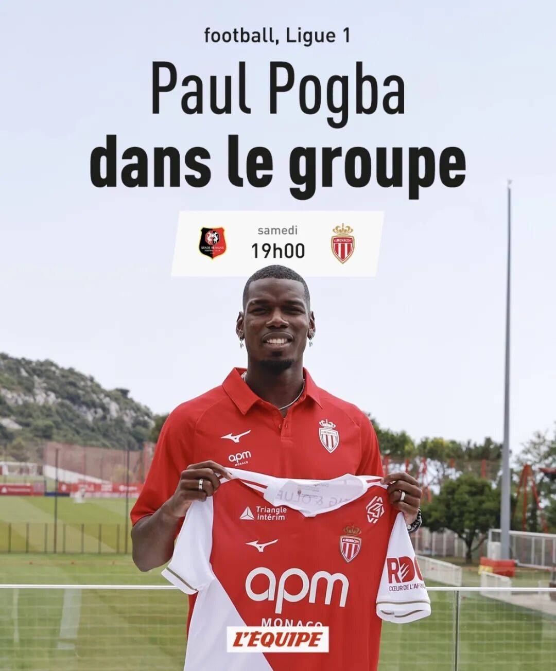 สโมสรอาแอส โมนาโก ได้ยืนยันอย่างเป็นทางการแล้วว่า พอล ป็อกบา จะถูกบรรจุชื่ออยู่ในทีมชุด 22 คน สำหรับการแข่งขันนัดที่จะพบกับ เรนส์ โดยทั้งทีมจะเดินทางไปยังบริตตานีในวันศุกร์นี้เพื่อเตรียมความพร้อม แม้ว่ากองกลางรายนี้อาจไม่ได้ลงสนามในทางทฤษฎี แต่สถานะการเป็นนักเตะที่ลงทะเบียนกับสโมสรทำให้แทบจะเป็นไปไม่ได้ที่เขาจะไม่ได้มีส่วนร่วม ทีมจะประกาศรายชื่อผู้เล่นในวันแข่งขัน ซึ่งชื่อของเขาจะปรากฏอยู่ในรายชื่อนี้ ทำให้มีความเป็นไปได้สูงที่เขาจะได้ลงสนามแข่งขันอย่างเป็นทางการเป็นครั้งแรกในรอบสองปีสองเดือน และจะเป็นการประเดิมสนามในลีกเอิง (Ligue 1) อีกด้วย