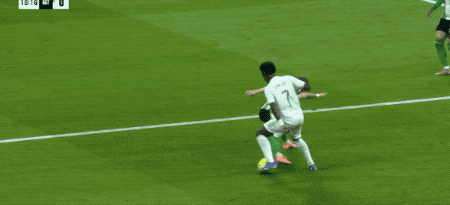 ด้วยการขาดหายไปของเอ็มบัปเป้ วินิซิอุสจึงมีบทบาทเชิงรุกมากขึ้นในการเรียกร้องบอล ในนาทีที่เจ็ด เขาทะลุเข้าไปในกรอบเขตโทษและล้มลงหลังจากดูเหมือนว่าจะถูกชนจากด้านหลัง แต่ผู้ตัดสินโบกมือปฏิเสธการเรียกร้องจุดโทษ