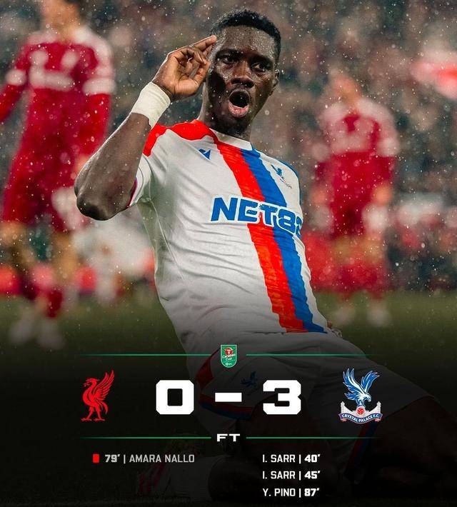 เวลา 03:45 น. ตามเวลาปักกิ่ง วันที่ 30 ตุลาคม การแข่งขันรอบที่สี่ของศึกคาราบาวคัพ (EFL Cup) คู่เอกเป็นการพบกันระหว่าง ลิเวอร์พูล เปิดบ้านรับการมาเยือนของ คริสตัล พาเลซ ที่สนามแอนฟิลด์ แต่กลับพ่ายแพ้อย่างย่อยยับ 0-3!
