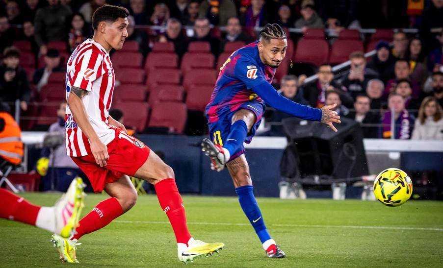 นักเตะค่าตัว 90 ล้านยูโรของบาร์ซ่าช่วยกู้สถานการณ์! ยิงเดี่ยวเข้าประตูโล่ง + จูบตราสโมสรท่ามกลางแฟนบอล 40,000 คน _ราฟินญ่า_ _แอตเลติโก มาดริด_ _พบ_