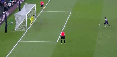 ในนาทีที่ 38 มายูลูเปลี่ยนเกมไปทางฝั่งขวา ซึ่งดูเย่ส่งบอลข้ามไปทันที รอสซี่ประเมินทิศทางของลูกบอลผิดพลาด ปัดบอลออกไปแต่ไม่สามารถเคลียร์ได้อย่างมีประสิทธิภาพ ควิชา ควาราตสเคเลีย สไลด์เข้าไปแตะบอลเข้าประตูโล่ง ทำให้ปารีส แซงต์-แชร์กแมงขึ้นนำ 1-0! จากประตูนี้ PSG เข้าสู่ห้องแต่งตัวในช่วงพักครึ่งด้วยสกอร์นำหนึ่งประตู