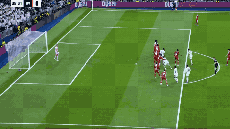 ในนาทีที่ 37 กิเยร์เมส่งบอลข้ามอย่างแม่นยำไปให้เบลลิงแฮม ซึ่งลอยตัวขึ้นโหม่งทำประตูโดยไม่มีการประกบ ทำลายความเสมอและขึ้นนำ