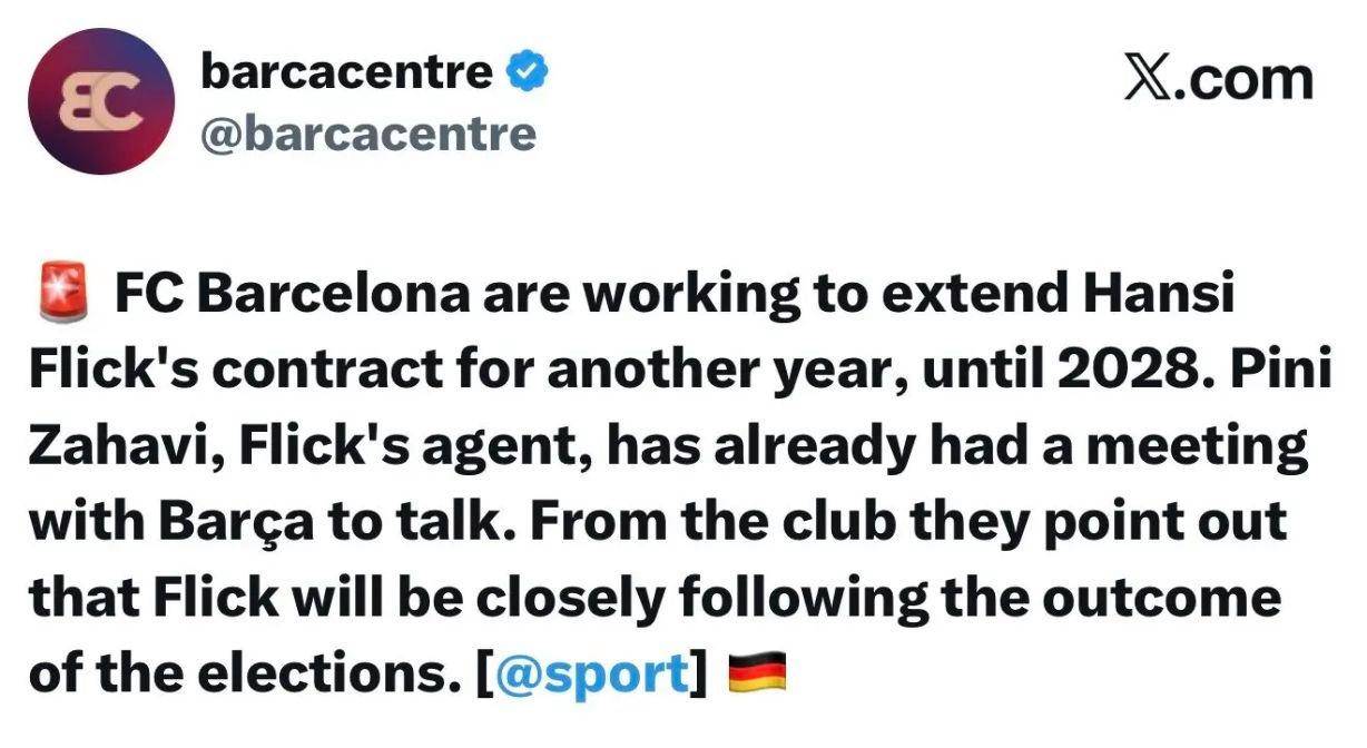 เมื่อไม่กี่นาทีที่ผ่านมา ตามรายงานที่ยืนยันแล้วจากสื่อสเปน Mundo Deportivo บาร์เซโลนาได้ตัดสินใจอย่างเป็นทางการที่จะประกาศพัฒนาการสำคัญก่อนตลาดซื้อขายนักเตะช่วงฤดูหนาว การตัดสินใจนี้เกี่ยวข้องกับความสามารถในการแข่งขันและผลงานโดยรวมของสโมสรในฤดูกาลที่จะมาถึง - แท้จริงแล้ว บาร์ซ่าตั้งใจที่จะขยายสัญญากับหัวหน้าโค้ช ฮันซี่ ฟลิค ทั้งสองฝ่ายได้จัดการเจรจาหลายครั้ง โดยมีความคืบหน้าไปอย่างราบรื่นมาก สำหรับบาร์เซโลนา การรักษาฟลิคไว้มีความสำคัญอย่างยิ่ง