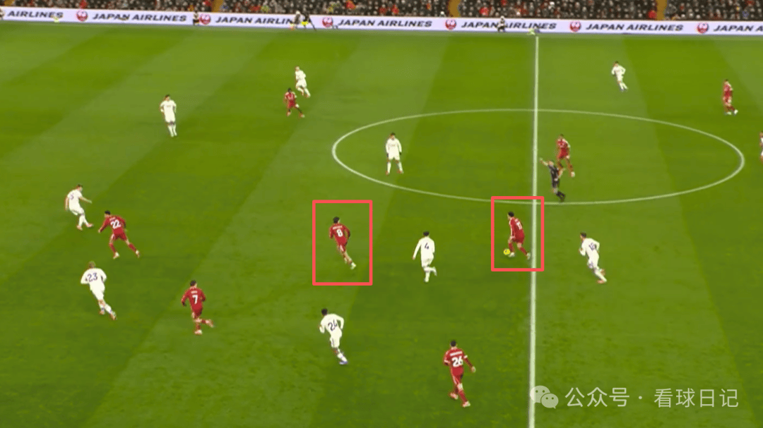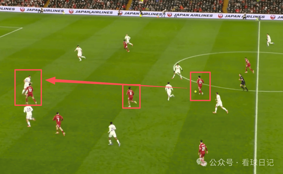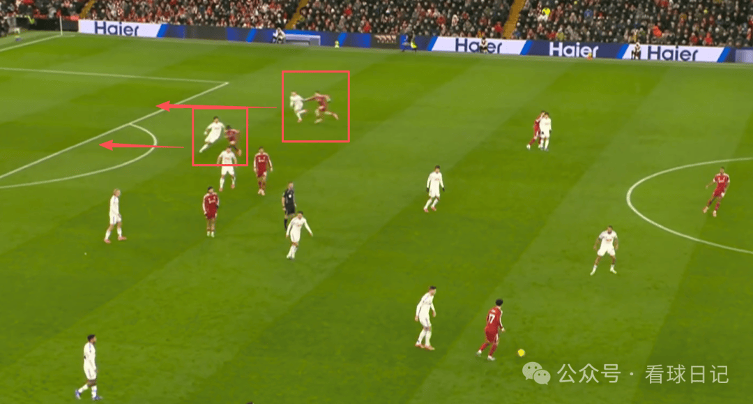 หลังจากถือบอลไว้ชั่วครู่ โจนส์ยังมีโอกาสที่จะส่งบอลให้โซโบตคาที่ไม่ได้ถูกประกบ แต่เขาเลือกที่จะเล่นบอลตรงไปยังเอกิติแทน ซึ่งอยู่ในตำแหน่งที่ไม่ดีนัก ส่งผลให้บอลถูกกองหลังกลางของลีดส์สกัดได้!
